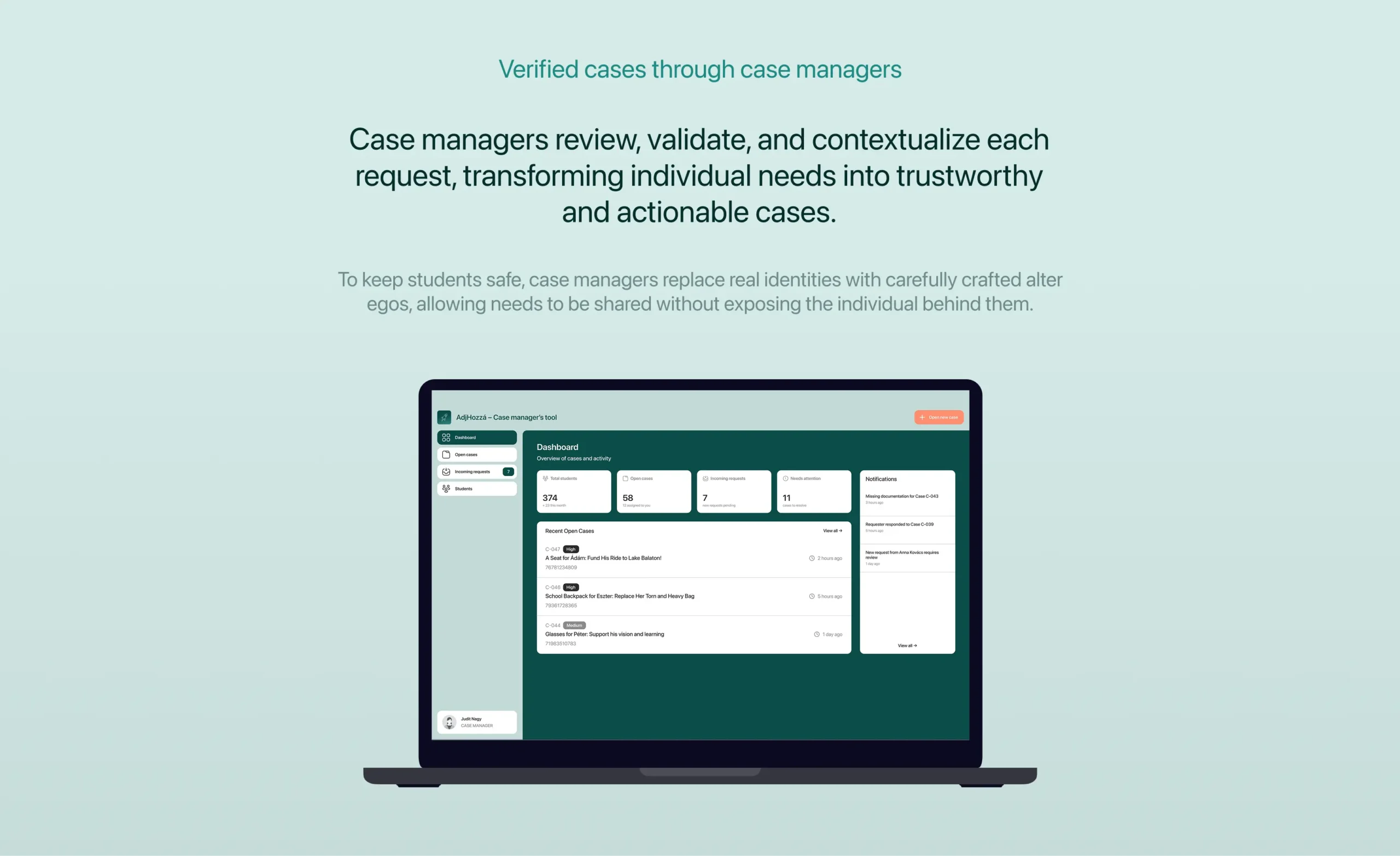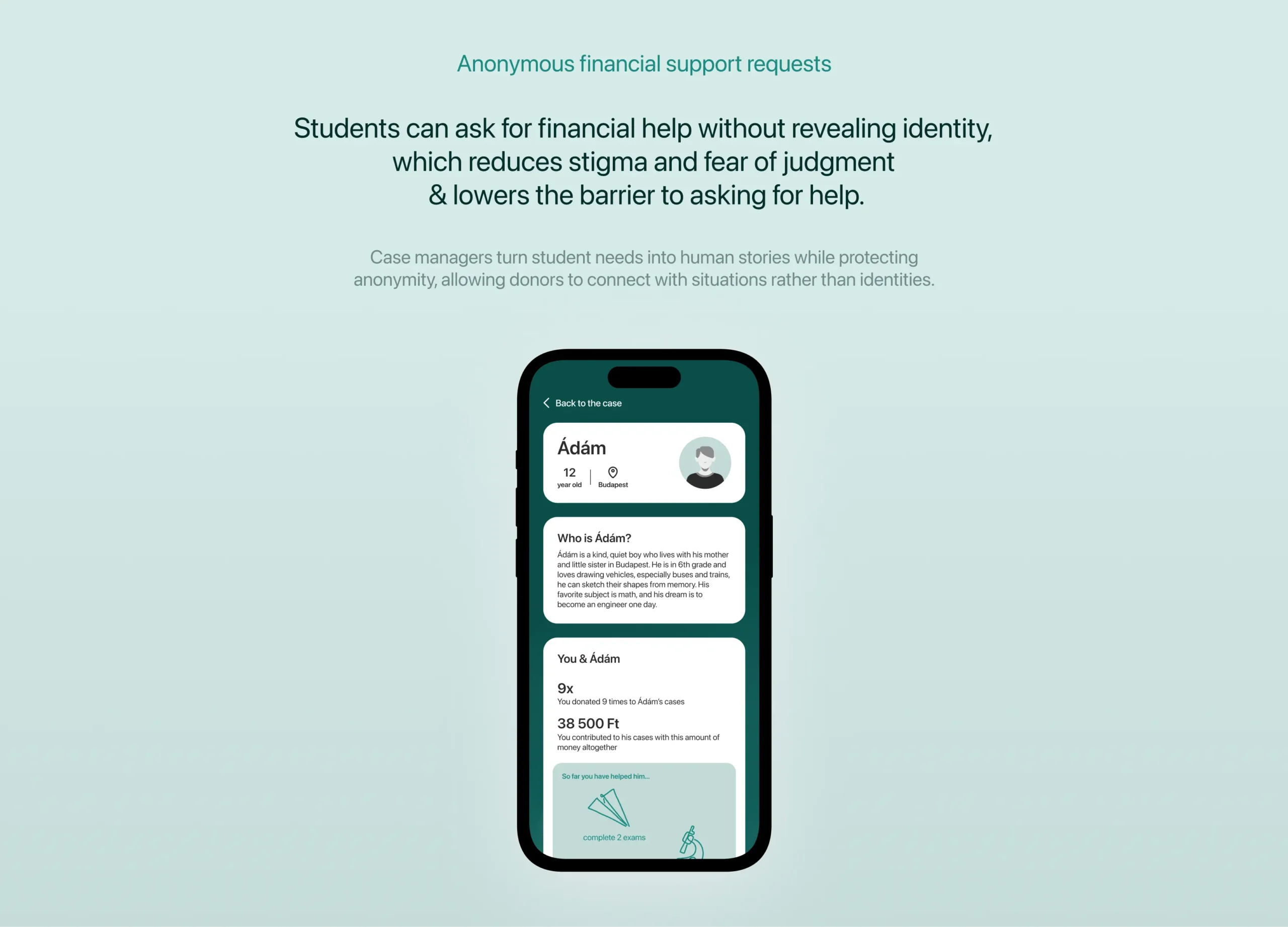 AdjHozzá is a micro-donation platform designed to help students in vulnerable situations to receive financial support anonymously, balancing trust, safety, and meaningful connection.